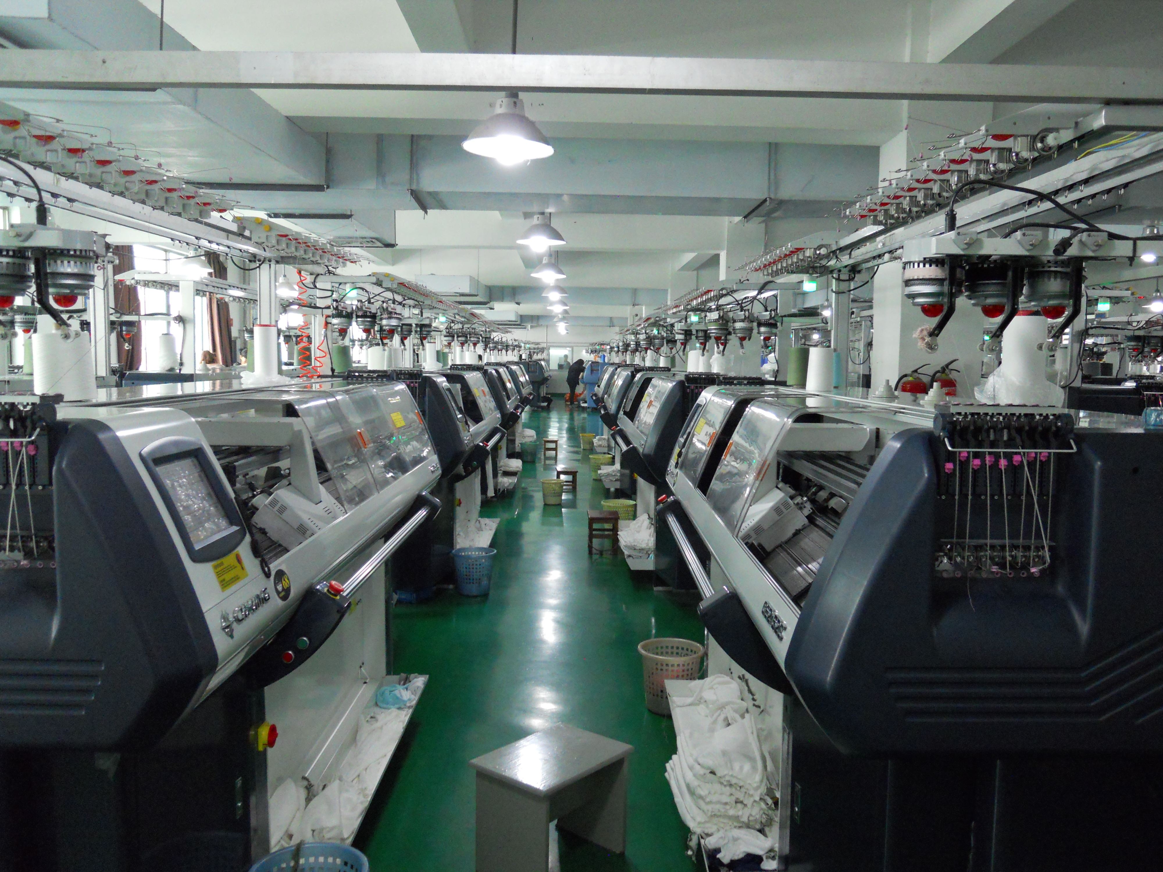 Computerized flat knitting machine workshop